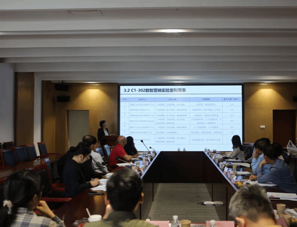 首先,商学院副院长王秀梅详细汇报了实验室建设方案,包括实验室建设的意义和必要性、实验室功能定位、仪器设备配置、拟承担的实验教学任务情况等方面的内容。