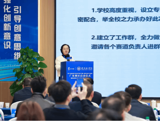 钟肖英教授代表广东赛区组委员向与会嘉宾汇报了三创赛前期准备情况,并详细介绍了赛事组织保障措施及关键时间节点,承诺将严格按照有效团队数比例,“公平、公正、公开”分配参赛指标,切实保障各高校参赛权益。