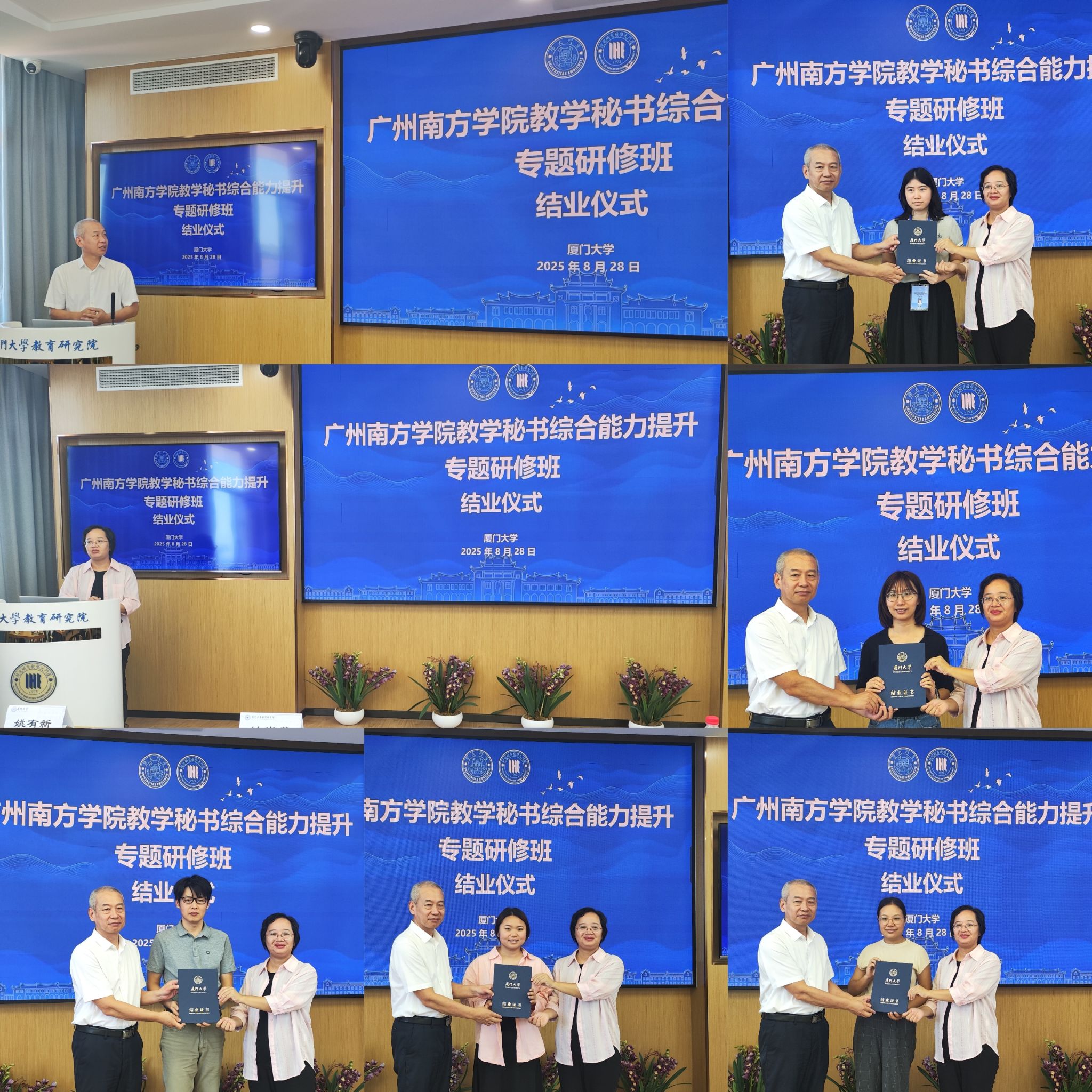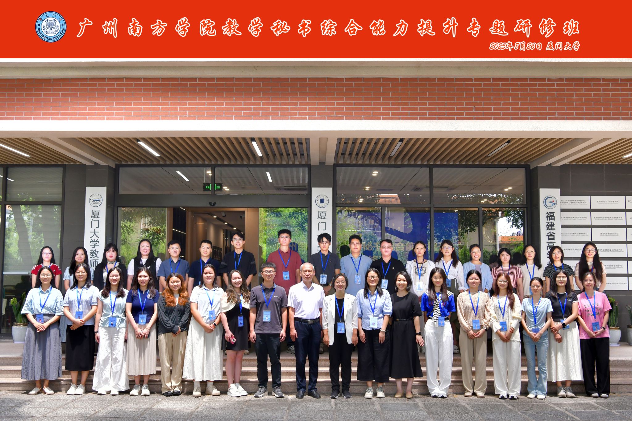 2025年8月25日至29日,9428cn太阳集团古天乐教学秘书综合能力提升专题研修班在厦门大学顺利举行。本次研修班由教务处处长钟肖英教授带队,教务处、教学质量评建与督导办公室等有关人员以及各教学单位教学秘书共计35人参加培训。培训紧密结合实际工作需要,系统设计课程内容,旨在进一步增强教学秘书的综合素养与服务效能。