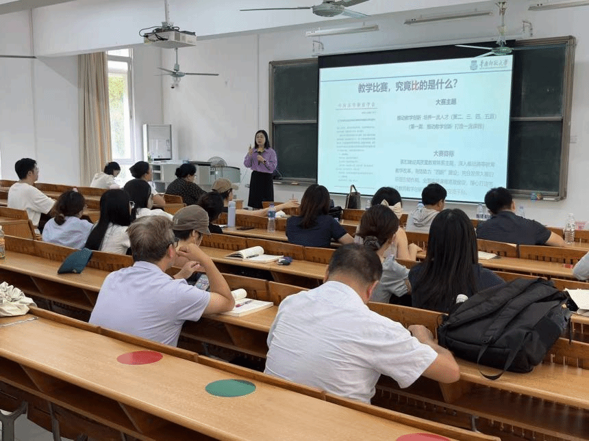 为助力我校教师备战第六届教学创新大赛,切实做到“以赛促教”,提升教学质量,9月29日下午,教务处在教学楼1号201室举办“育人强师”教师发展系列培训第三讲——“以赛促教 卓越教学:教学创新大赛赛制介绍及备赛经验分享”。
