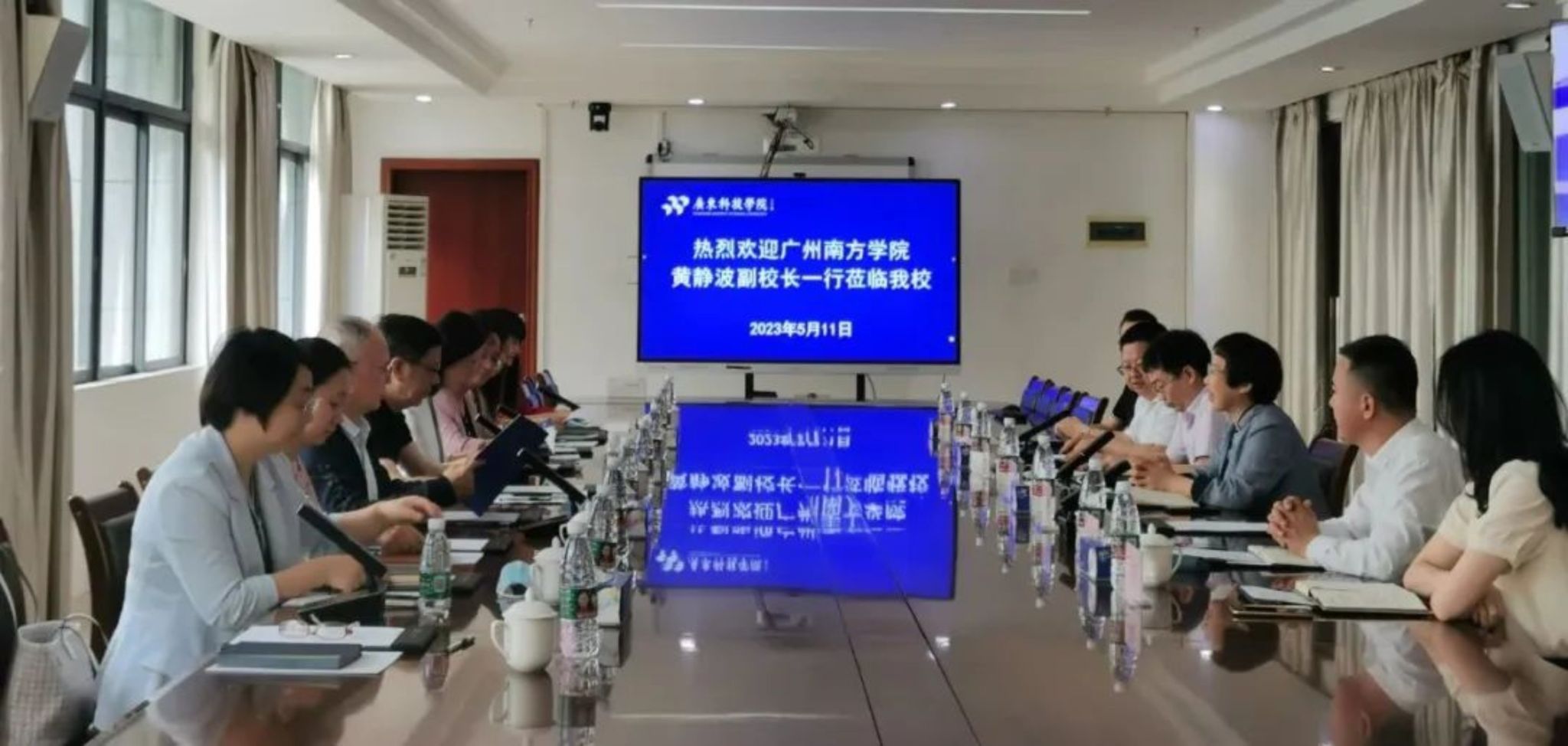 5月11日下午,学校副校长黄静波、副校长兼财务总监王兰、副校长夏亮辉及相关部门责任人等一行九人赴广东科技学院交流学习本科教学合格评估工作经验。广东科技学院副校长吴立平、赵惠平及有关部门负责人热情接待了我校到访人员。