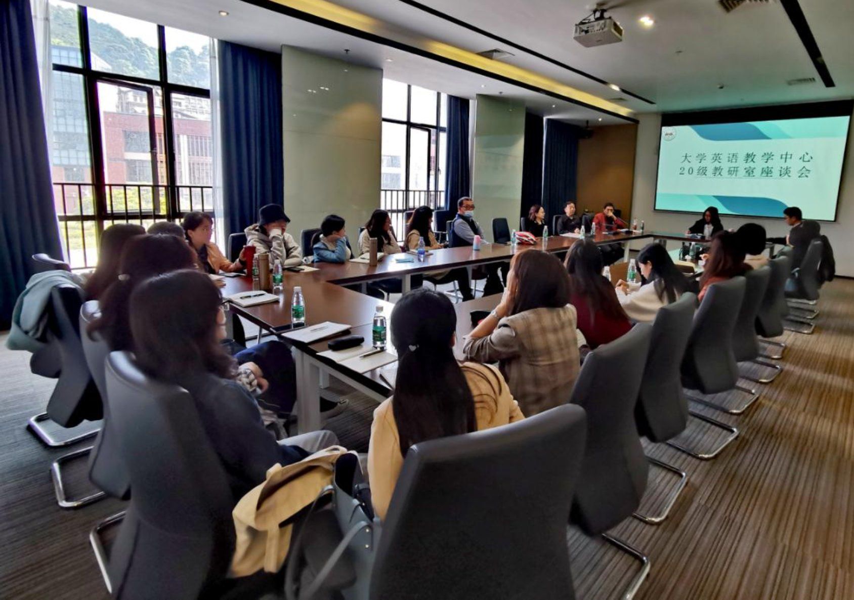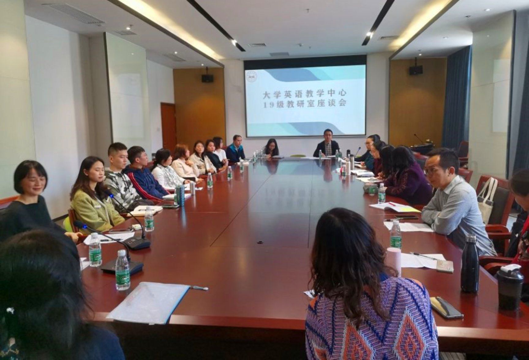 座谈会分别由教研室主任黄光艳老师、宋微微老师主持,大英中心全体教师分别参加了会议。座谈会邀请了大英中心的八位课程教授和教学督导就过去一年的听课情况与大英中心的老师们进行面对面交流,并就如何提高教学能力、促进职业发展进行了座谈。