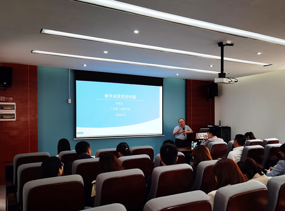 教育教学成果是一个学校教学水平、教学质量和办学综合实力的重要体现。为更好帮助我校教师开展教学研究,提高教育教学成果奖申报成效,近日,教务部举办省级教育教学成果奖申报培训专题讲座。本次讲座特邀广东第二师范学院副校长李旭旦教授担任主讲人,对我校教师如何撰写省级教育教学成果奖申报书给予指导。发展规划与制度建设办公室主任刘金成,教务部常务副部长吕佩安、副部长伍哲臻出席培训会,各教学单位教师共二十余人参加了讲座。