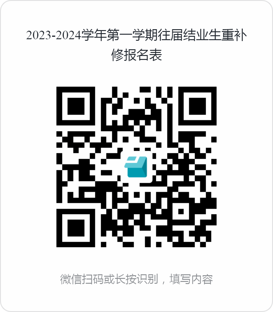 (一)确认参加本学期结业重补修的学生,须于9月15日12:00前通过扫描以下二维码填写提交申请信息。