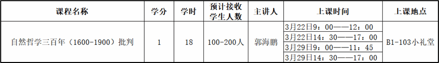 博雅学院关于学术报告型公选课《自然哲学三百年(1600-1900)批判》的选课通知